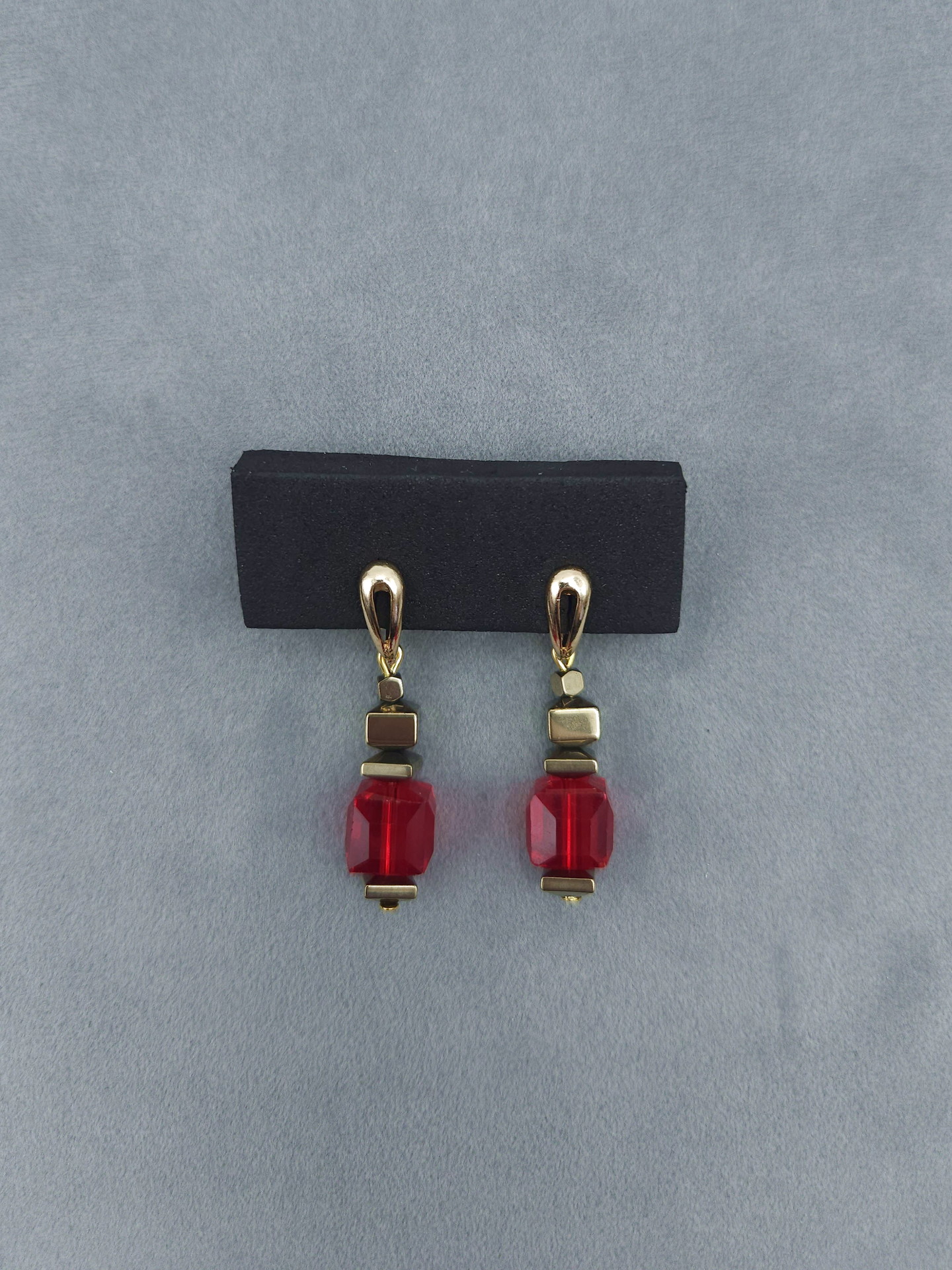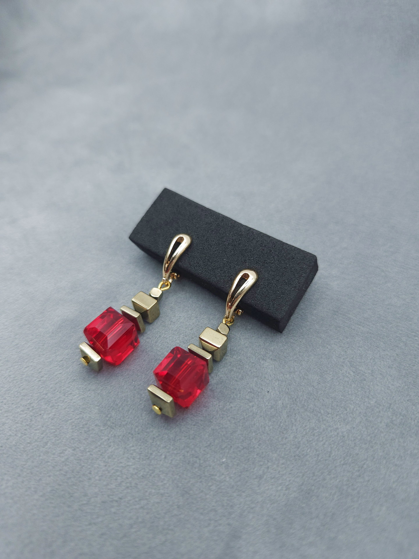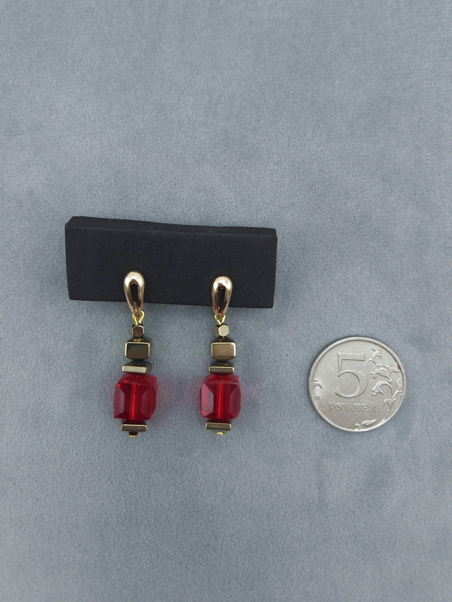 Серьги из алых кубических кварцев. Длина 3 см, Вес 9.5г.