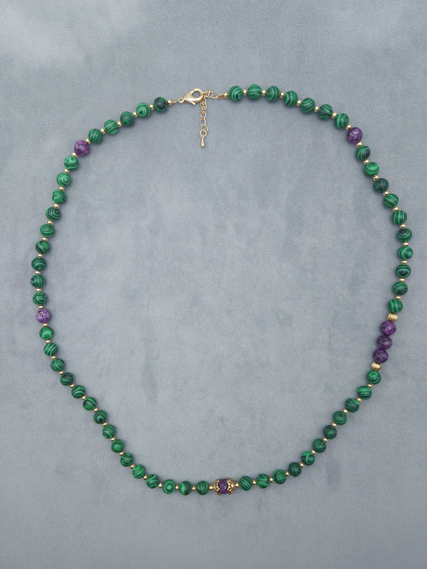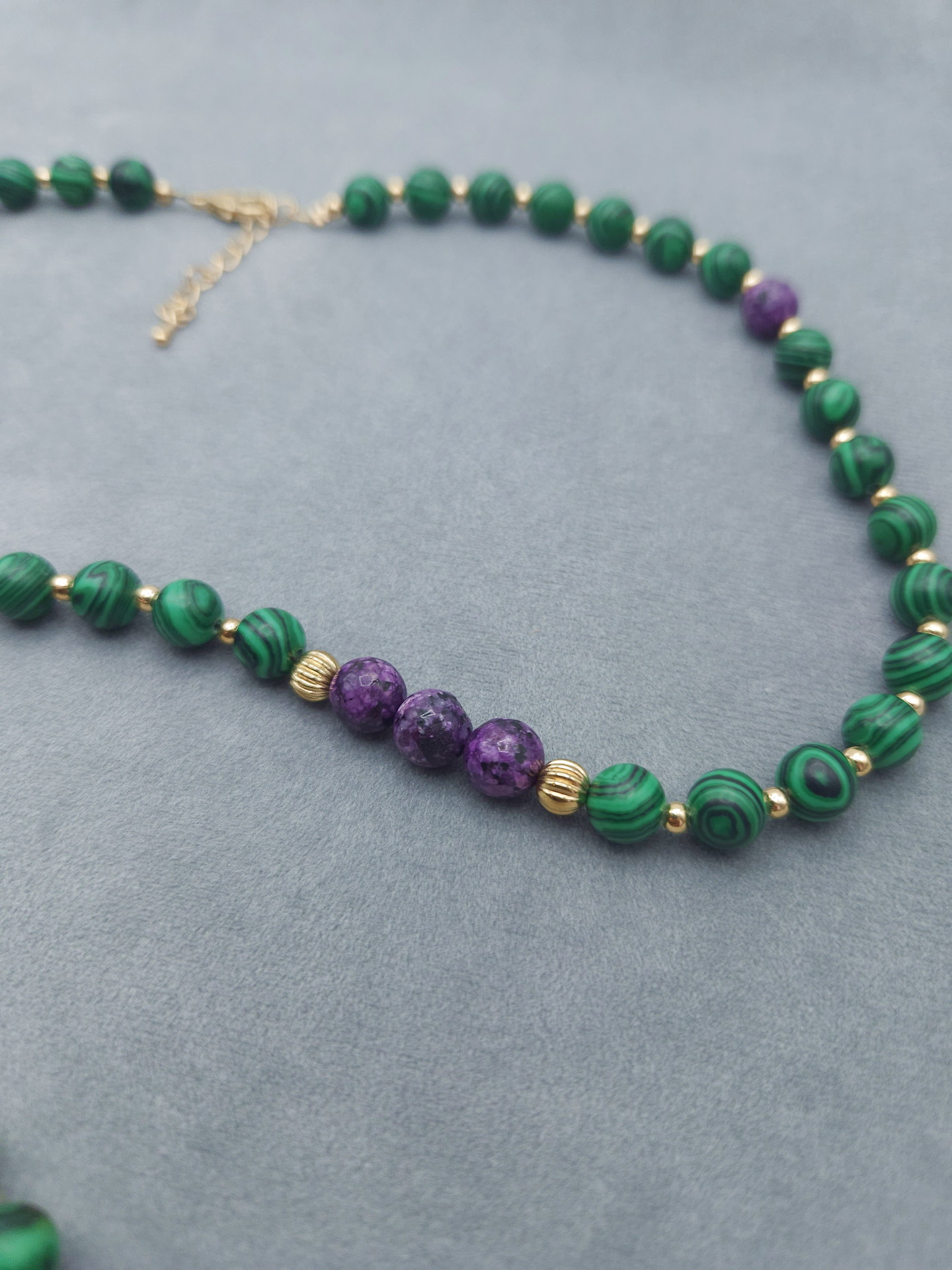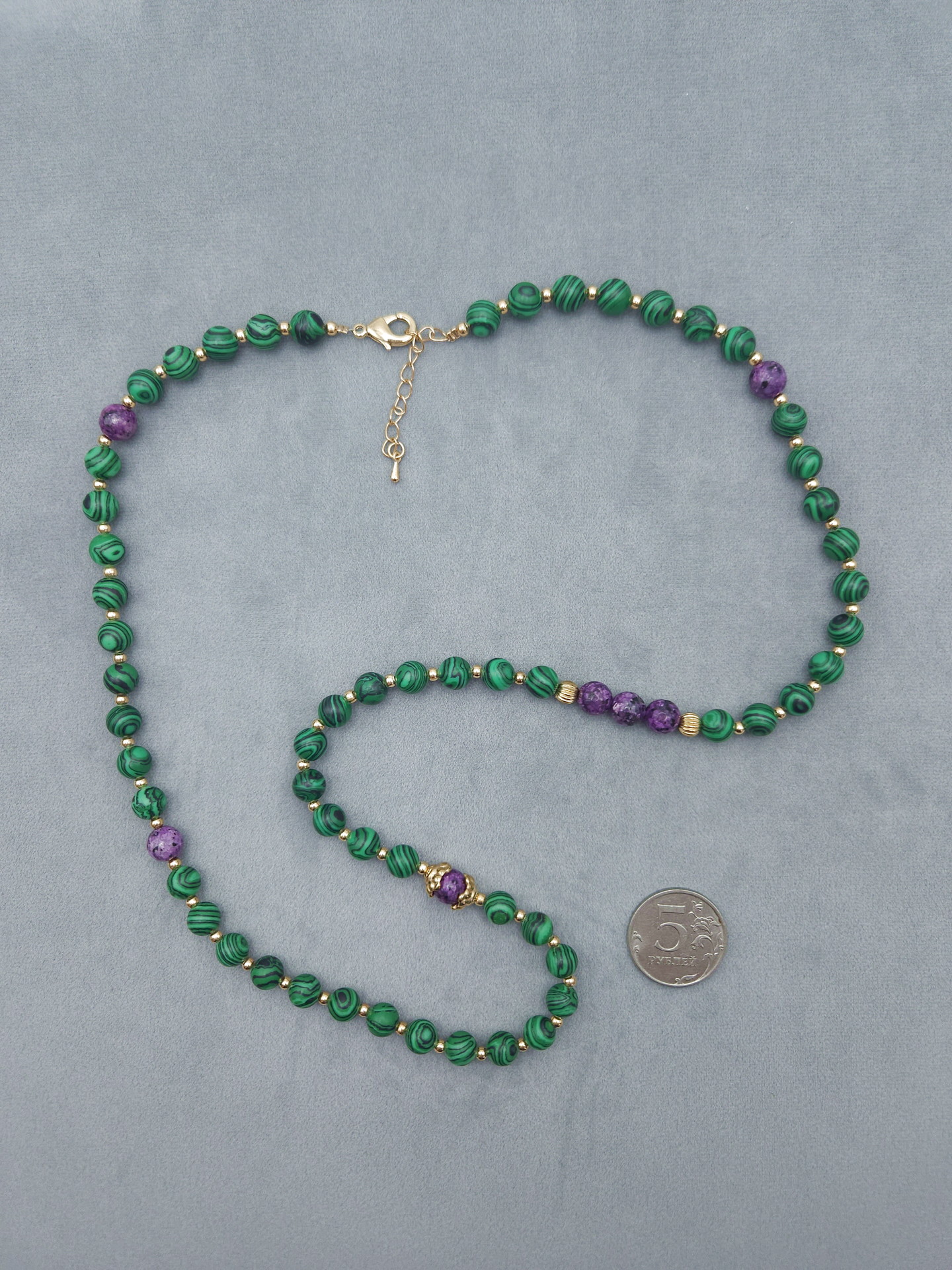 Бусы малахита и чароита (Конго/Якутия). Длина 7см, Шар 8мм, Вес 45 г. Малахит природный (Конго), Чароит природный (Якутия), вставки металл.