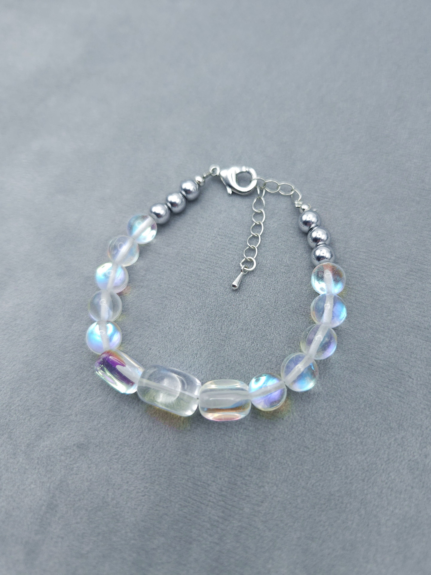 Браслет «опал» бесцветные с благородным мерцанием. Длина 18см, Вес 15г.