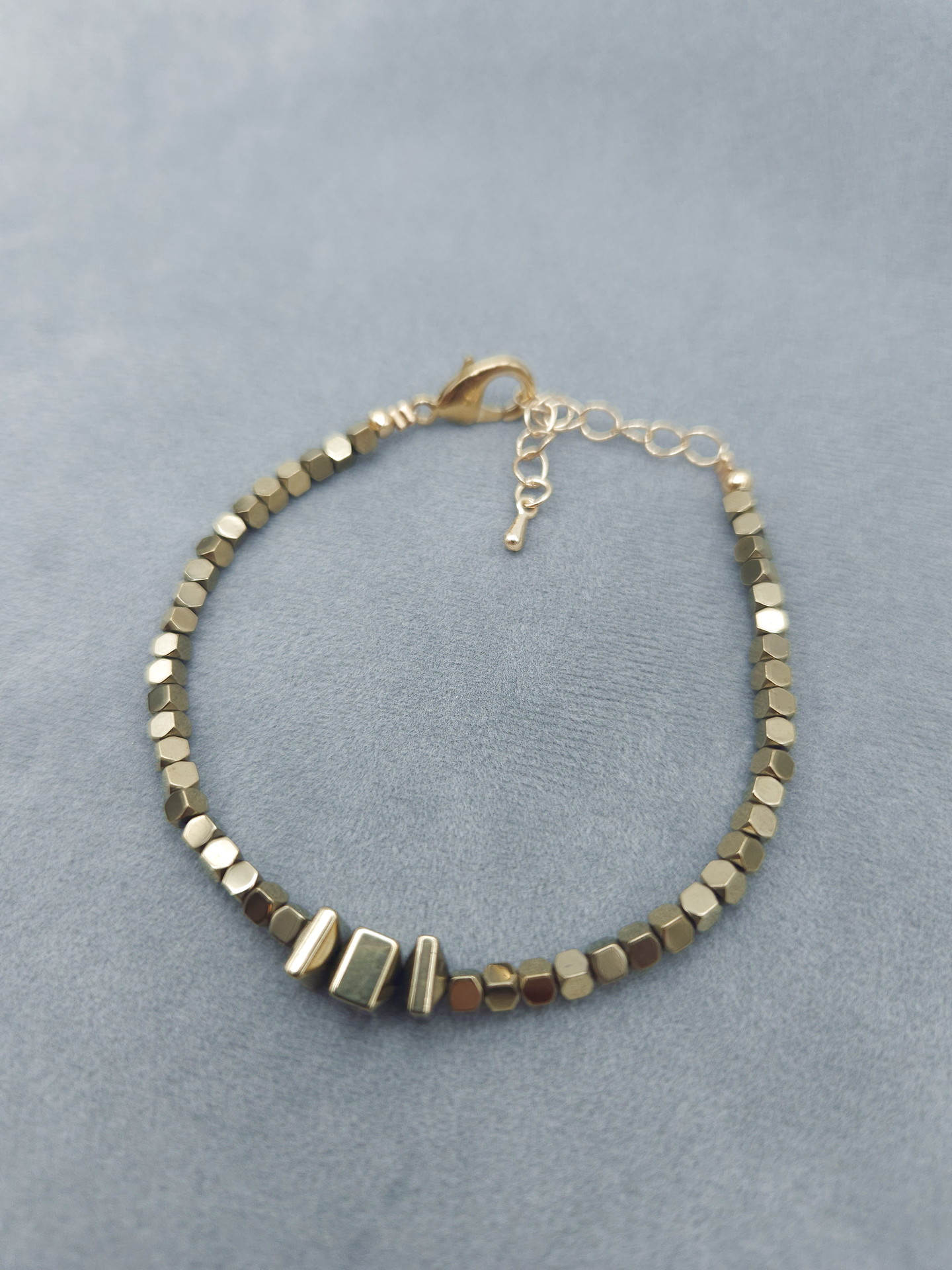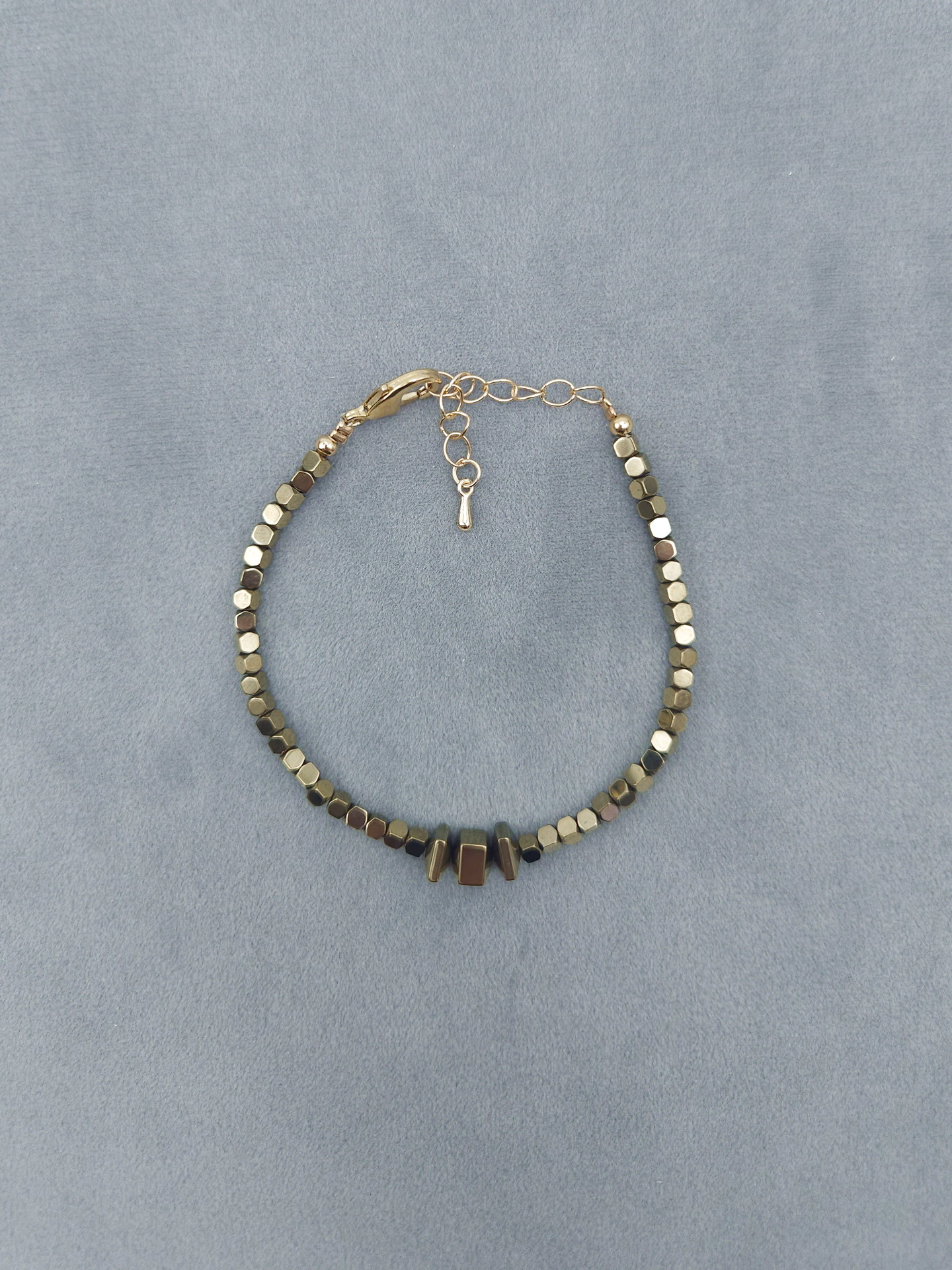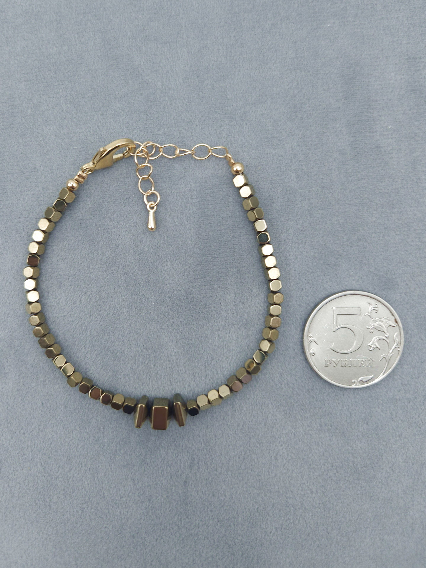 Браслет из граненого «золотого» пирита с цепочкой-удлинителем. Длина 18см, Вес 7г. Пирит граненый разных форм (Испания)
